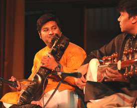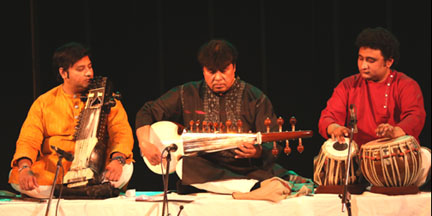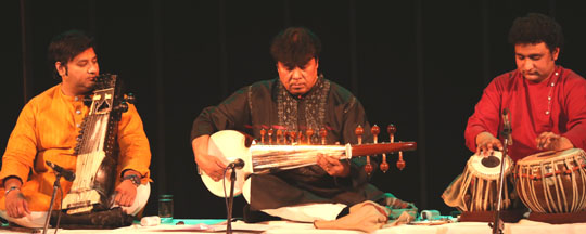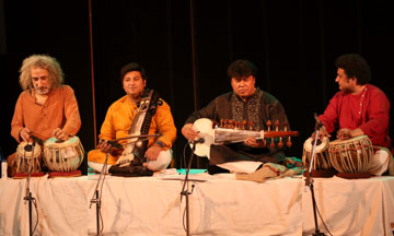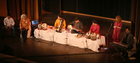 Image Gallery January 31/2018 - India Habitat Centre - Delhi Mukesh Sharma (sarod), Ahsan Ali (saraangi), Arshad Khan (tabla),Mahalakshmi (vocals), Emam (tabla, dumbak), Xavier Peres (keyboard), Kunal Sharma (cajon) All pictures by Swati Chauhan |