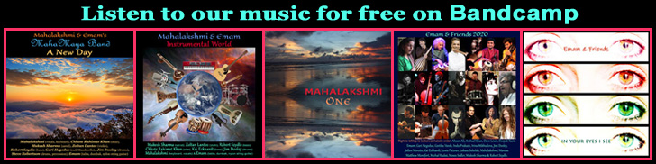 | In performance, we start as a duet: Mahalakshmi on keyboard & vocals Emam on tabla & percussion. We add other musicians as per requirements of the venue and the program. We call our full ensemble MahaMaya Band. Over the years, we have collaborated with amazing musicians from around the world and our albums are a testament to this. Our music is heavily influenced by Indian classical music and at times Jazz, rock as well as Middle Eastern and Eastern European music. In performance, the sound of our ensemble depends on the musicians that are performing with us. We bring the audience music that is uplifting and unique, from the heart. All original compositions by us (Mahalakshmi and Emam). |