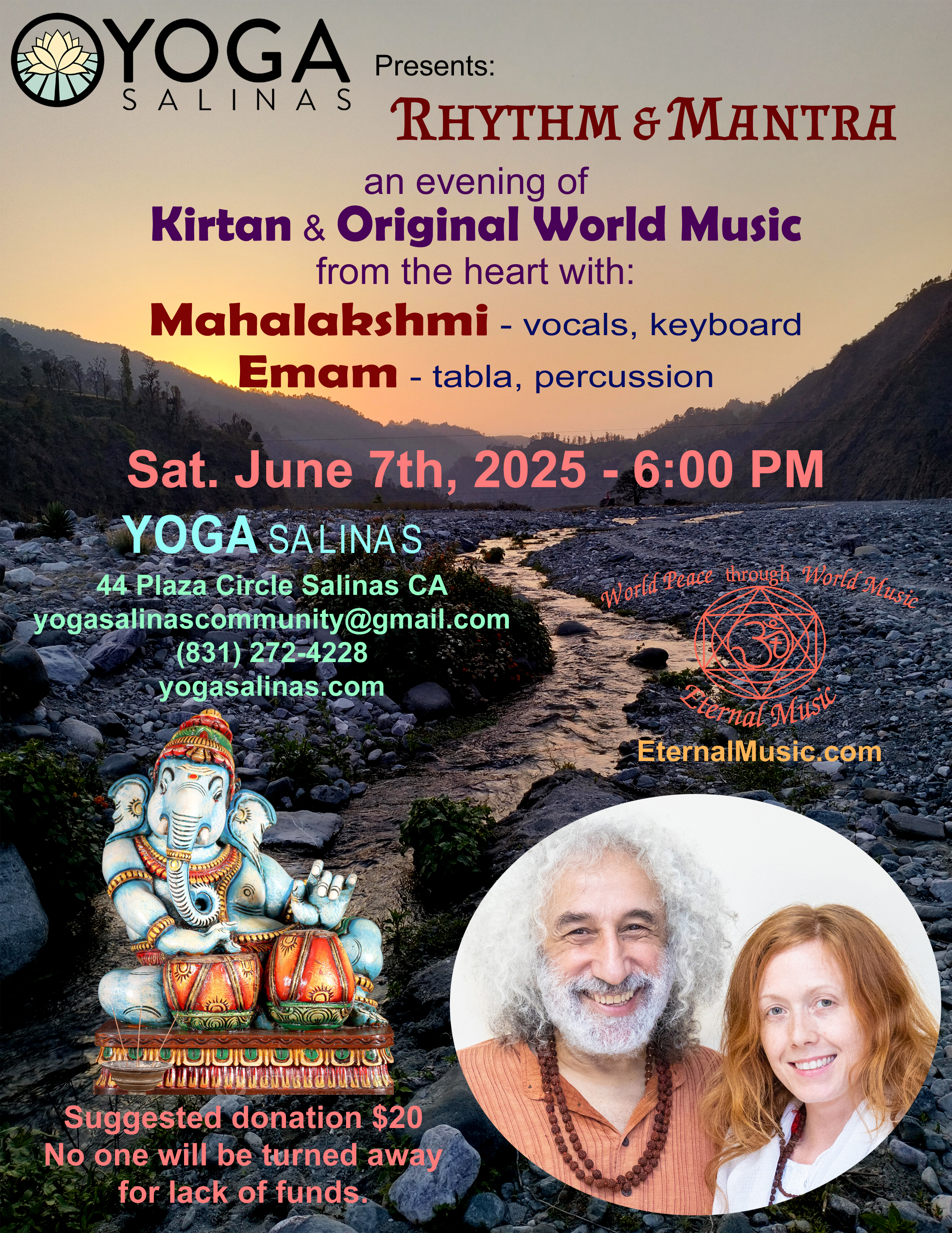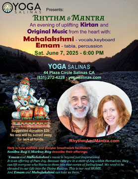 Sondra Ray & Markus Ray describe our offerings: "Emam and Mahalakshmi's music is beyond just inspirational; it is an offering of Pure Joy. Because they are in a state of Joy within themselves, they can lift everyone who listens to them into that vortex of feeling good. We need to be elevated in our Life into the Divine Realms. This is our real HOME. And Emam and Mahalakshmi can take us there." |
