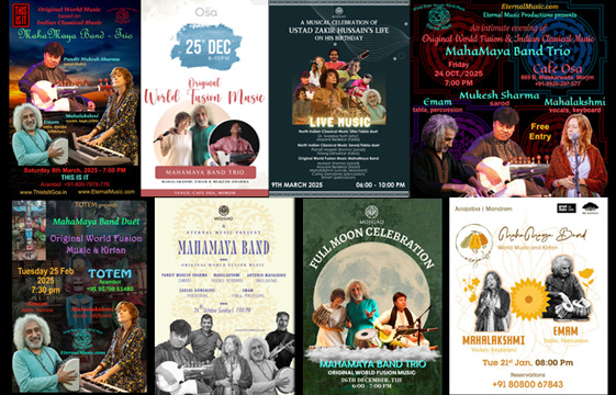 These are Original World Fusion Music Events featuring various formations of MahaMaya Band.