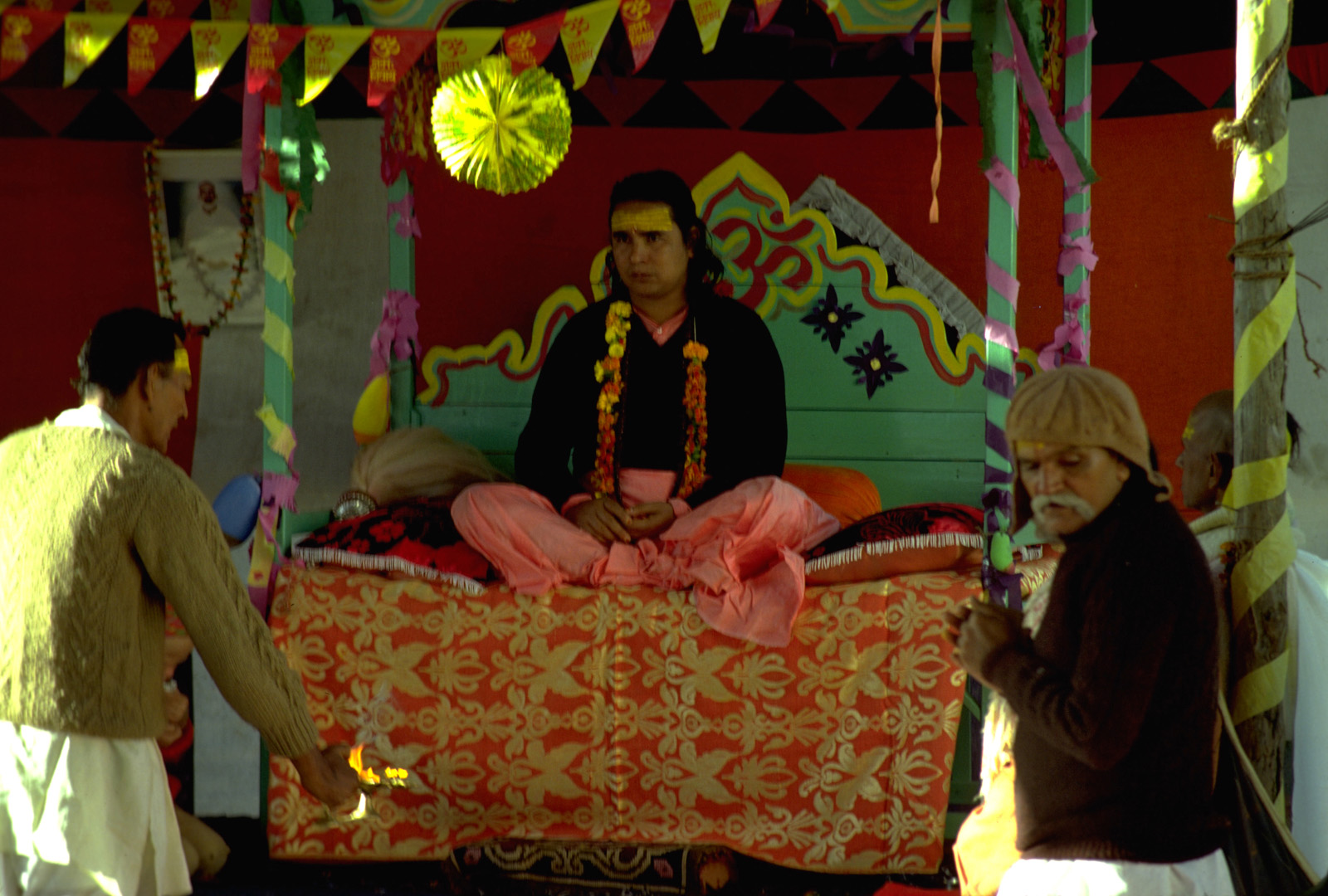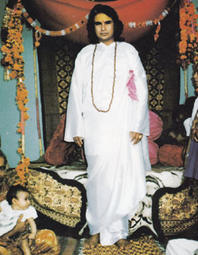Photo by Emam The Appearance of the Divine Mother of Hairakhan an account by Vishnu Datta Mishra (Shastriji) On May 25th, 1969, one month before the most worshipful divine Master Mahendra Maharaja left his body, he called me to Vrindavan by sending two telegrams to my home in Rajgarh, Rajasthan. These were his words when we met: "Brother Vishnu, if the Lord should appear during my absence, then this mantra will help you to recognize Him. As far as I know, this mantra is known only to the Lord and to no one else. It is mahamantra and was given to me by the Lord Himself at Siddhashram: it comes from His own divine lips and is a priceless jewel for many lives." As he spoke to me, the most worshipful divine master smiled and touched my head three times with his lotus hand. When, in February, 1971, Sri Hairakhan Bhagavan came to Samba Sada Shiva Kunja, Vrindavan, I was overcome, when I heard, word for word, the same mantra from the Lord's own lips. My heart was filled with joy and my soul was immersed in a sea of bliss; my body felt elated, my voice failed me. Then the conviction dawned in me that He is the Ultimate Absolute Divine, worshipped by our most beloved divine Master, that immortal Being of the beginning of time, indestructible, beyond vision, the Lord Narayana, who resides in Hairakhan. That same morning at Samba Sada Shiva Kunja I met an old friend of mine, Shri Vora of Bombay who is a devotee of Mahendra Maharaja. As soon as we met he said to me, "Shastriji, a few days ago I had a divine dream: a young maiden of very fair complexion appeared to me: Her hair fell over the back of her shoulders, Her forehead was luminous, Her eyes very large. When I asked her: 'Who are You?', she replied: "I am Hairakhandeshvari" but when I asked further, She only said: 'Search for Me!'" Having told me this episode, my friend asked me: "Can you tell me something about Hairakhandeshvari?" Immediately I took out my manuscript of the "Sri Hairakhandeshvari Sapta Sati" from my bag and said to him: "These are seven hundred verses I have written in praise of the Divine Mother of Hairakhan. When I presented them to our divine Master, he put the book on his head and started to dance, saying 'I am only a crow and do not deserve this beautiful script; when the swan will come, within your lifetime, then give it to Him.' Today his blessing and instruction are going to be fulfilled, when I will show this book to Lord Hairakhan." When he saw my manuscript and getting in this way such an immediate reply to his question, Mr. Vora was overjoyed. The Lord Himself then had a painting of the Divine Mother made by Mr. K.D. Tripati of Vrindavan, directing every detail of its execution. The events related above are the grace of the Supreme Goddess, the Divine Mother of Hairakhan and the manifested miracle of the divine incarnations of Lord Siva, in the Lord of Hairakhan. |