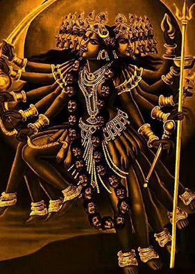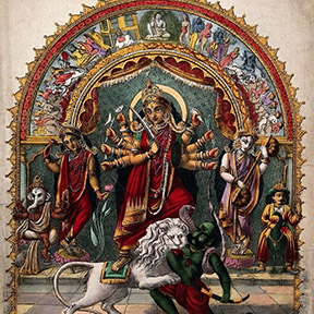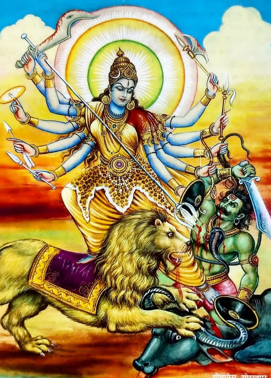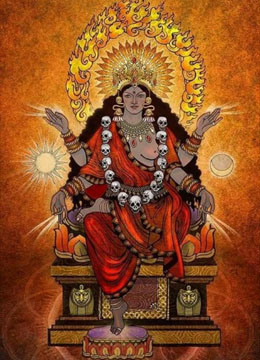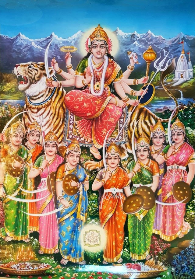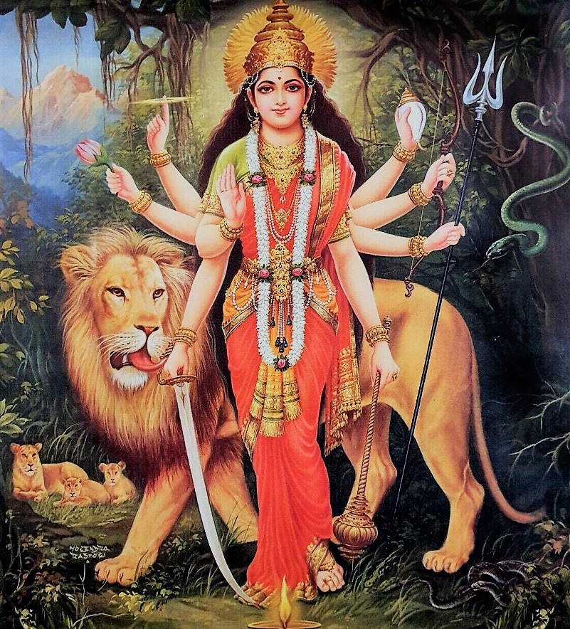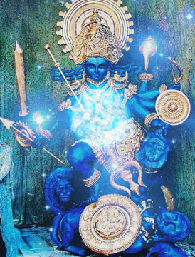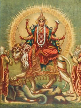 Image source: hinduawaken.tumblr.com 10. Durge vishvartihantri jaya jaya tvaritam shatrusainyam madiyam pitva pitva praharam kuru kuru satatam chindhi shulapraharaih. Bhaktanam bhitihantri sharanamupagatam trahi dasam prapannam sarveshamishtadatri tribhuvanajanani twatsama na dvitiya. 10. O Durga, removing the pains of this world, Drink! Drink until You are drunk and unleash Your fury onto the *enemies' armies, pierce them and vanquish them with strokes of the spear. O Giver of Shelter to those who seek Your protection, save those servants who come to You for refuge. Mother of the Three Worlds (Bhur, Bhuvah, Svaha), who grants all cherished desires, there is none equal to You! *lust, anger, ego, avarice, delusion, jealousy |