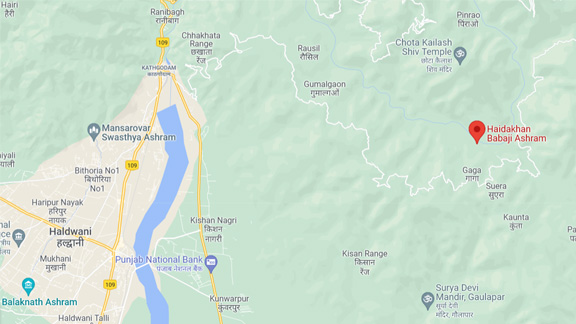 | Babaji's main ashram is called Hairakhan Vishwa Maha Dham and is located in Hairakhan (Haidakhan), a small village approximately 10 KM East of Haldwani in the state of Uttarakhand. You can find it on Google Maps: It takes about 1.5 hours to get to the ashram from Haldwani by local SUV taxis. It is not recommended to drive there using a small car, although people are known to do it. The best way to get there is to take a train to Haldwani or Kathgodam and then hire a local car to take you there. You can see the ashram and the surrounding areas in these music videos: Oh Mata - Instrumental Durge Jai Jai Ma - Instrumental Shri Guru Sharanam - Instrumental Raghunandan - Instrumental For more videos/footage from Hairakhan, please visit: Videos from Hairakhan |
